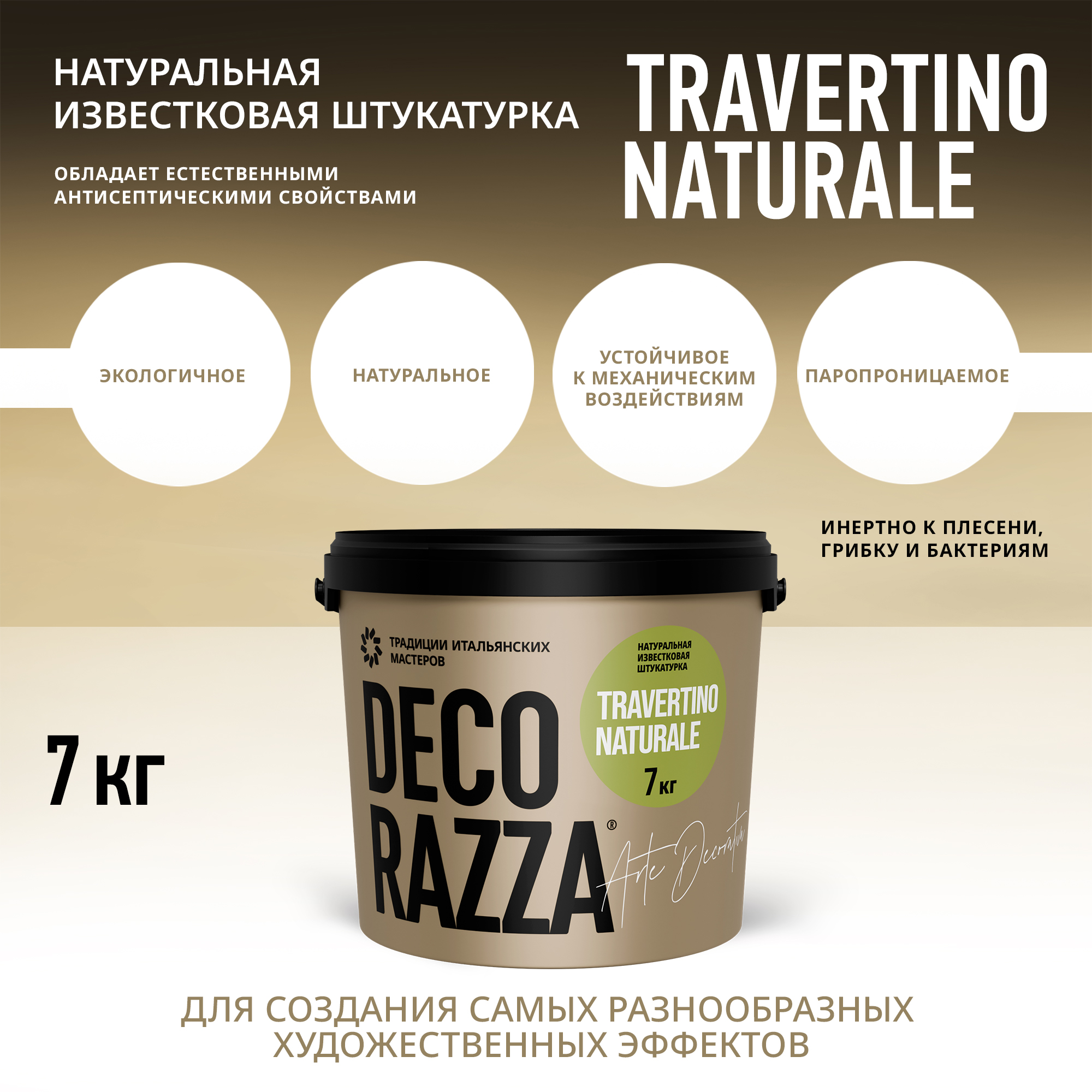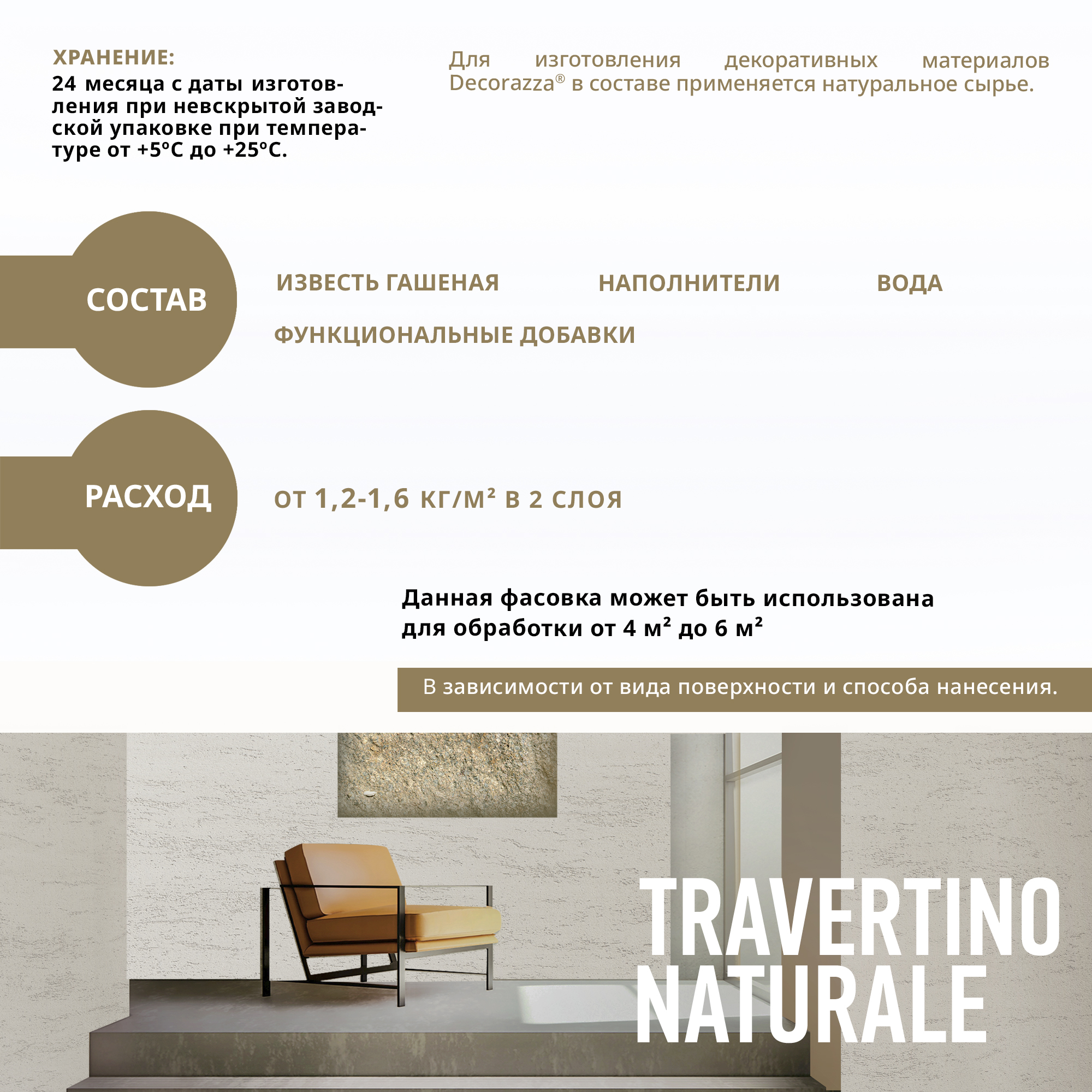 Декоративное покрытие Travertino naturale  -  Штукатурка для создания декоративного покрытия без швов и соединений на стенах, потолках, колоннах, фризах и других архитектурных деталях внутри помещений от бренда Decorazza с доставкой по России!