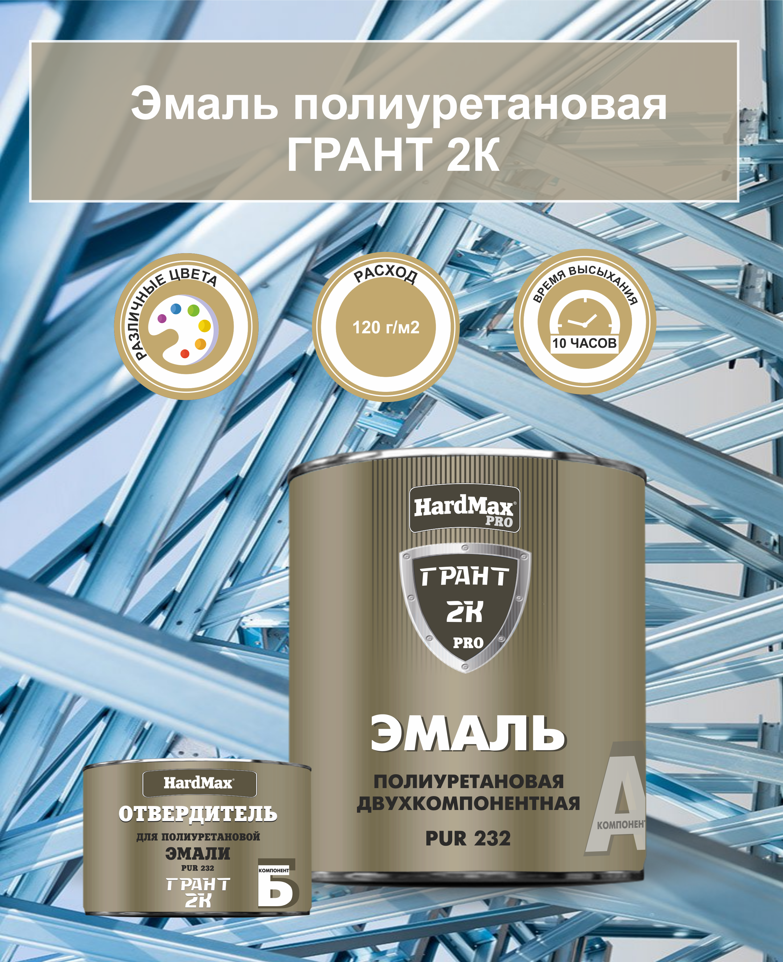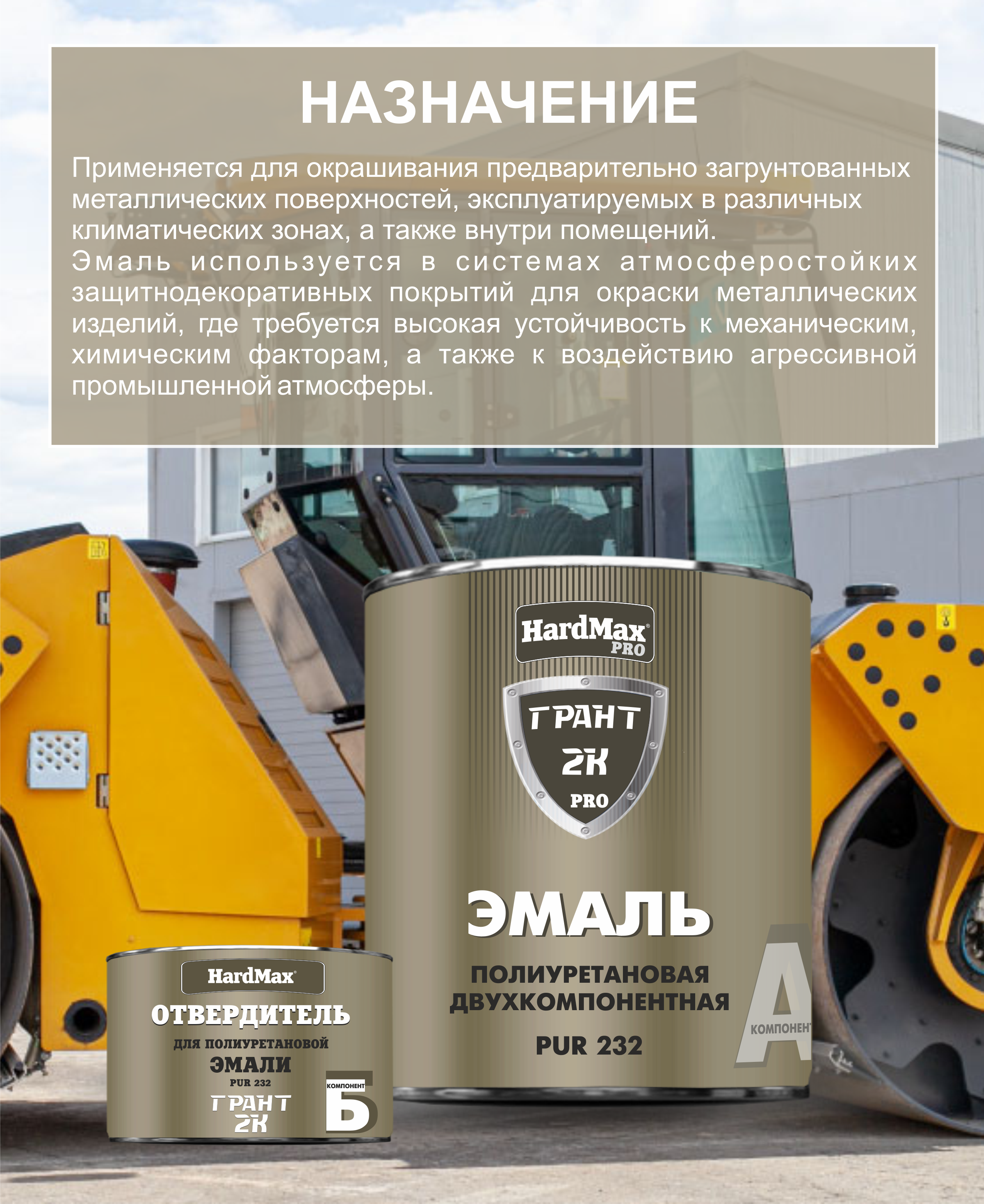 ОБЛАСТЬ ПРИМЕНЕНИЯ. Эмаль HARDMAX PUR 232 предназначена для окрашивания предварительно загрунтованных металлических поверхностей, эксплуатируемых в различных климатических зонах, а также внутри помещений.