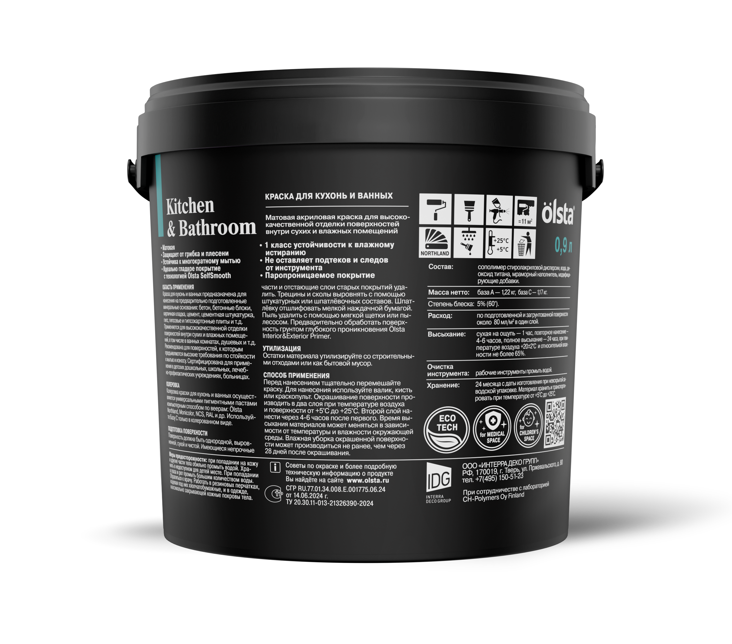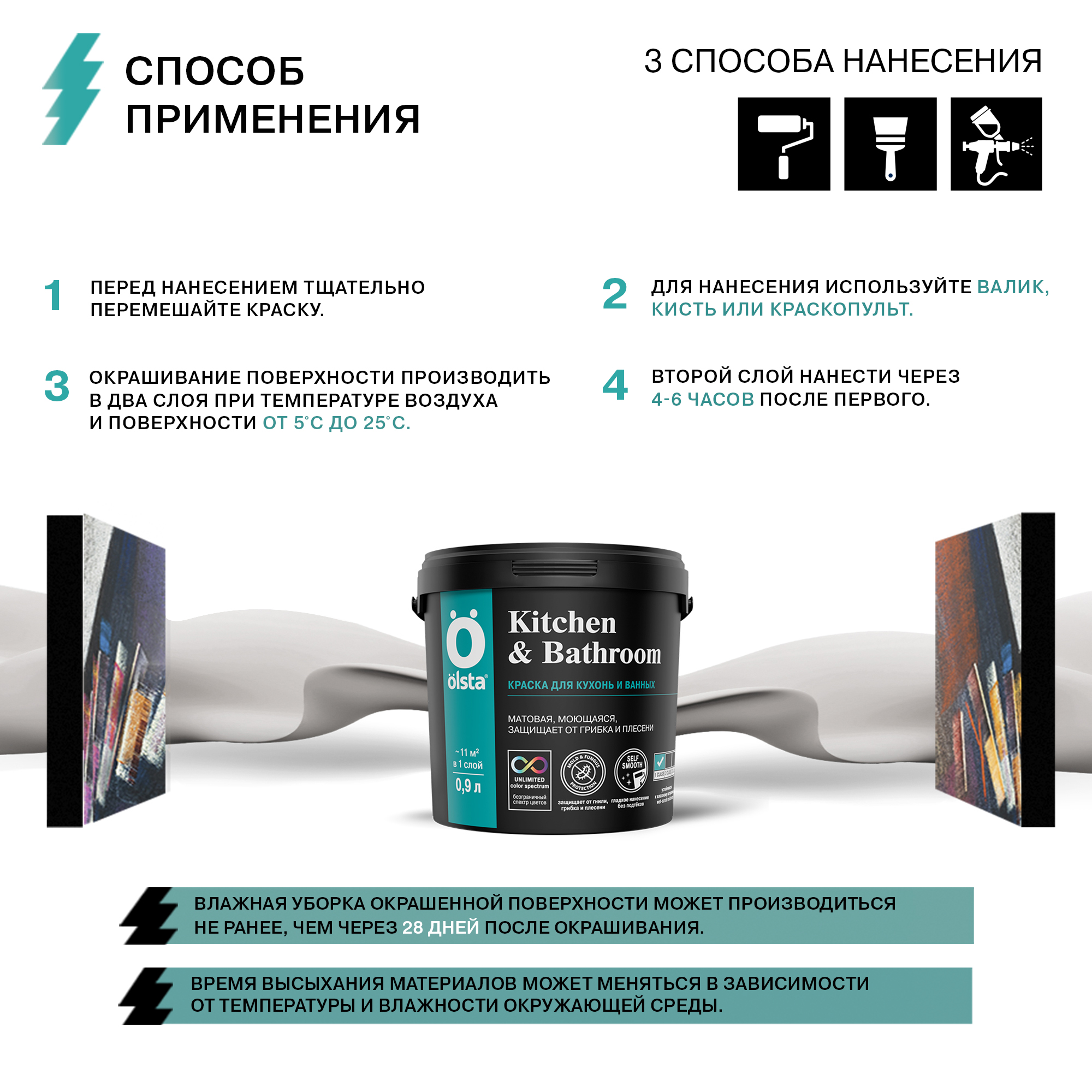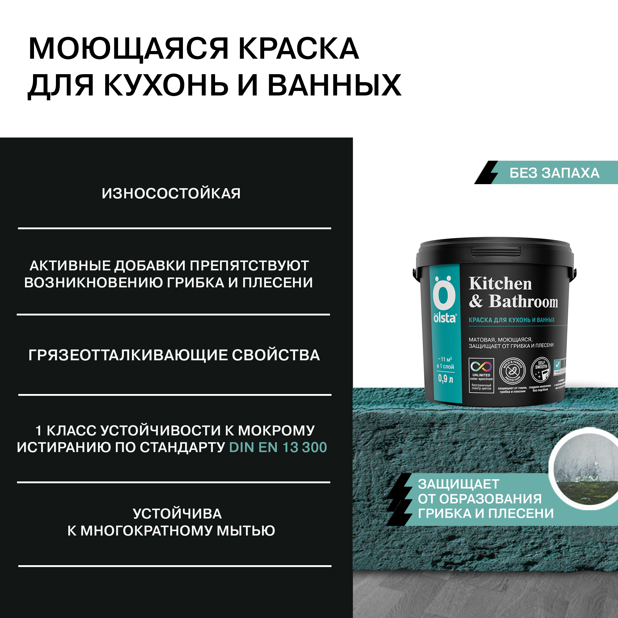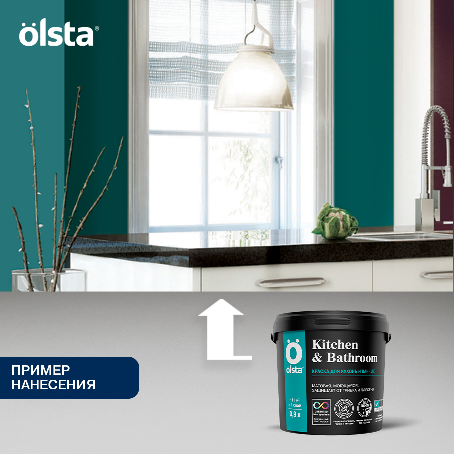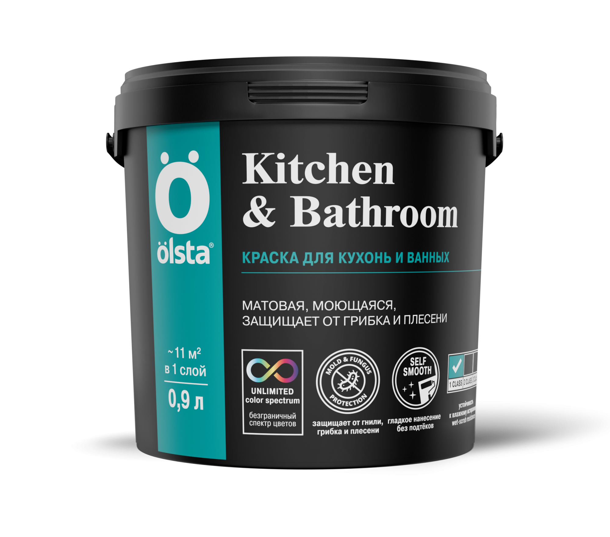 Краска для кухонь и ванных Kitchen&bathroom  -  Стойкая к мытью латексная краска для кухонь и ванных с грязеотталкивающими и антисептическими свойствами от бренда OLSTA с доставкой по России!