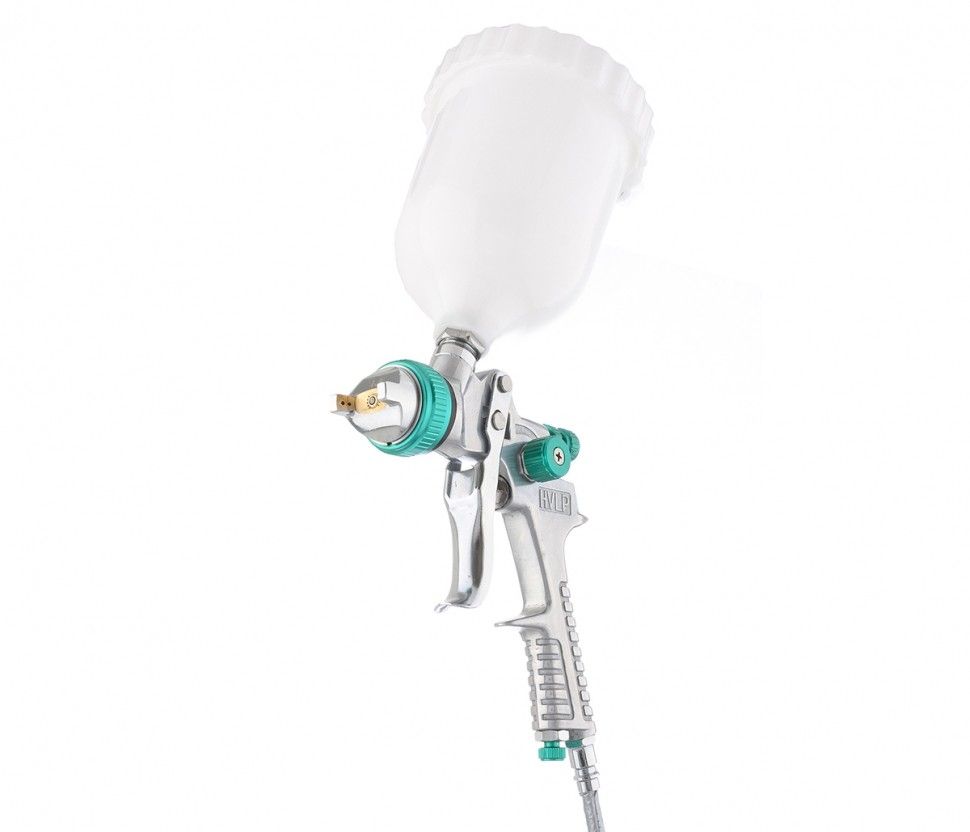 Краскораспылитель с верхним бачком STELS системы HVLP, High Volume Low Pressure (высокий объем, низкое давление).