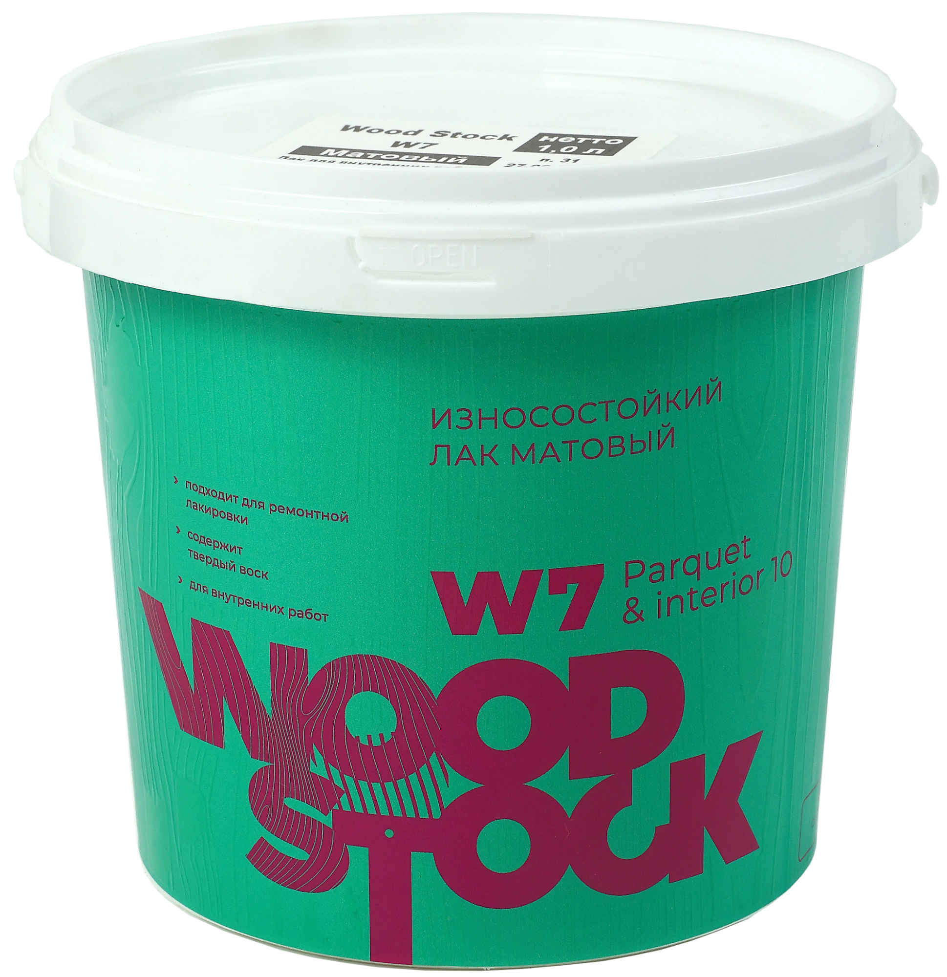 Лак для паркета и интерьера матовый W7  -  Лак для паркета и интерьера Woodstock W7 — это высококачественное покрытие, разработанное для создания долговечного и элегантного вида ваших интерьеров. Этот акриловый лак с матовым эффектом идеально подходит как для полов и лестниц, так и для мебели и стен, обеспечивая непревзойденную износостойкость и защиту древесины. Основанный на водной основе, лак Woodstock W7 отличается экологичностью и безопасностью использования в закрытых помещениях благодаря отсутствию запаха. Он легко наносится и образует гладкую, ровную поверхность, подчеркивая естественную красоту дерева. Благодаря своим свойствам, этот лак идеально подходит для внутренних работ, позволяя вам защитить и улучшить внешний вид любых деревянных поверхностей. Используйте Woodstock W7 для создания уютного и стильного пространства, где красота натурального дерева сочетается с надежной защитой от износа и повреждений. от бренда Woodstock с доставкой по России!
