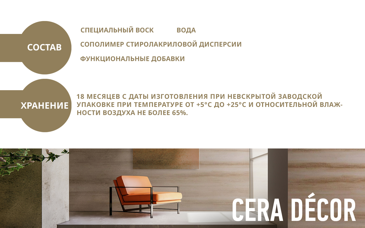 Лессировка матовая с воском CERA DECOR - Матовый лессирующий состав для декоративных покрытий от бренда Decorazza с доставкой по России!