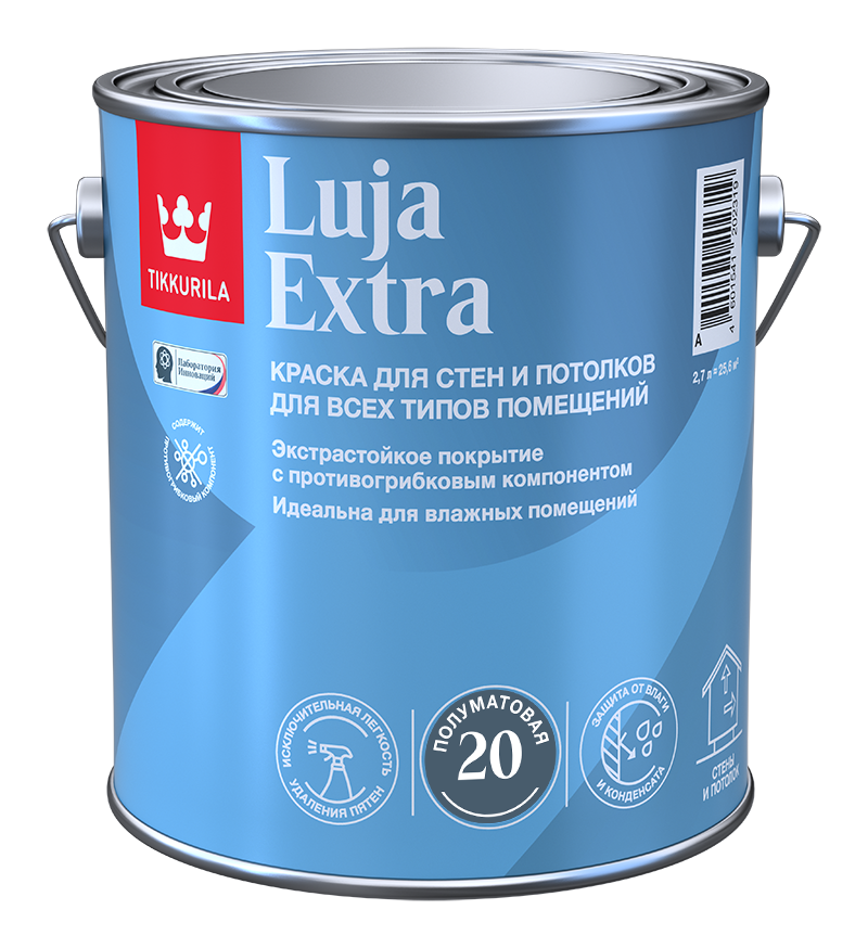 Моющаяся полуматовая краска LUJA EXTRA 20  -  Моющаяся краска для стен и потолков Tikkurila LUJA EXTRA 20 Tikkurila LUJA EXTRA 20 — это высококачественная воднодисперсионная полуматовая краска, разработанная специально для внутренних работ в самых разных условиях, включая влажные помещения, такие как кухни и ванные комнаты. Её высокопрочная формула обеспечивает непревзойденную стойкость к мытью, что делает её идеальным выбором для участков с интенсивным использованием. Эта краска обладает исключительной способностью защищать стены и потолки от образования грибка и плесени, обеспечивая чистоту и здоровье вашего интерьера. Её водостойкие свойства обеспечивают надежную защиту поверхностей, делая их устойчивыми к воздействию влаги. Благодаря своему универсальному применению, Tikkurila LUJA EXTRA 20 идеально подходит для создания уютного и долговечного пространства в любой части дома. от бренда Tikkurila с доставкой по России!