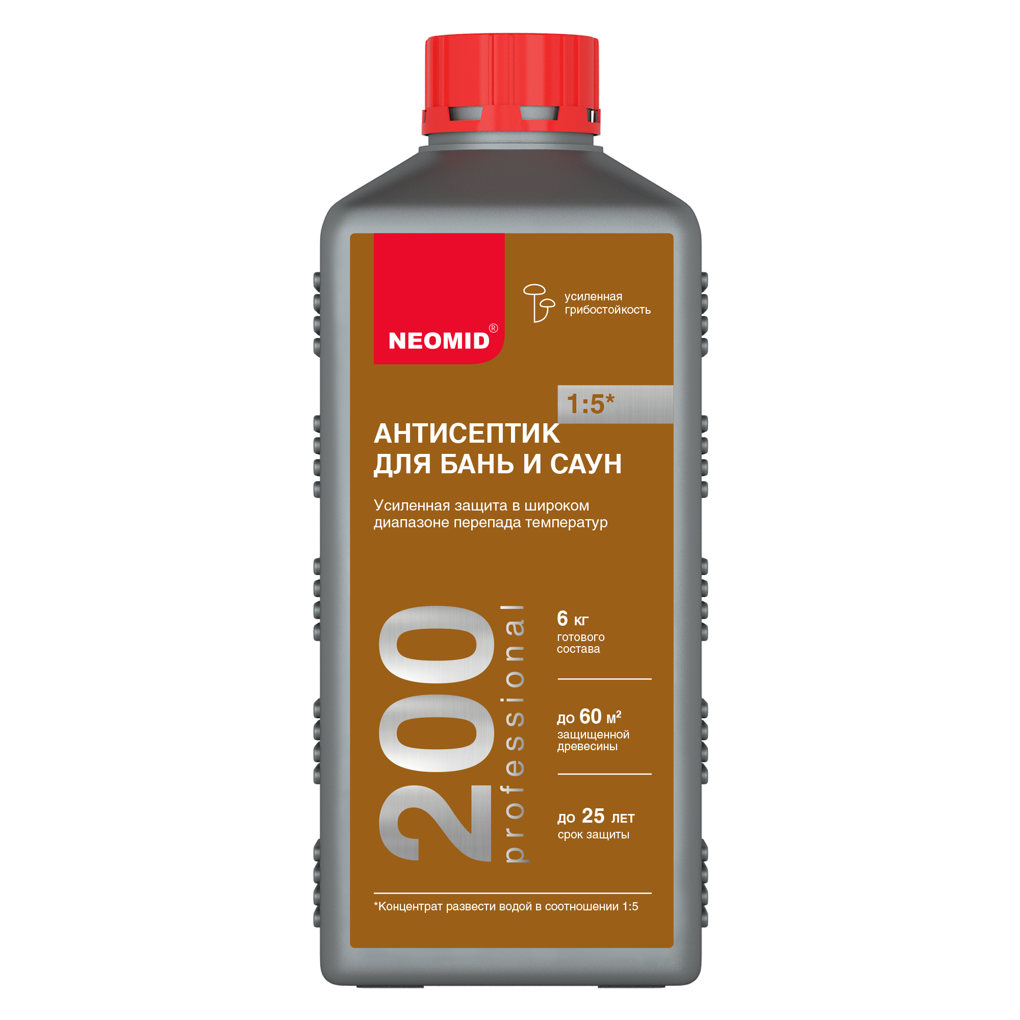 NEOMID 200 деревозащитный концентрат для бани  -  Антисептик для бань и саун. Способен как предотвращать биопоражение, так и останавливать уже начавшиеся процессы разрушения древесины биологическими агентами от бренда Neomid с доставкой по России!