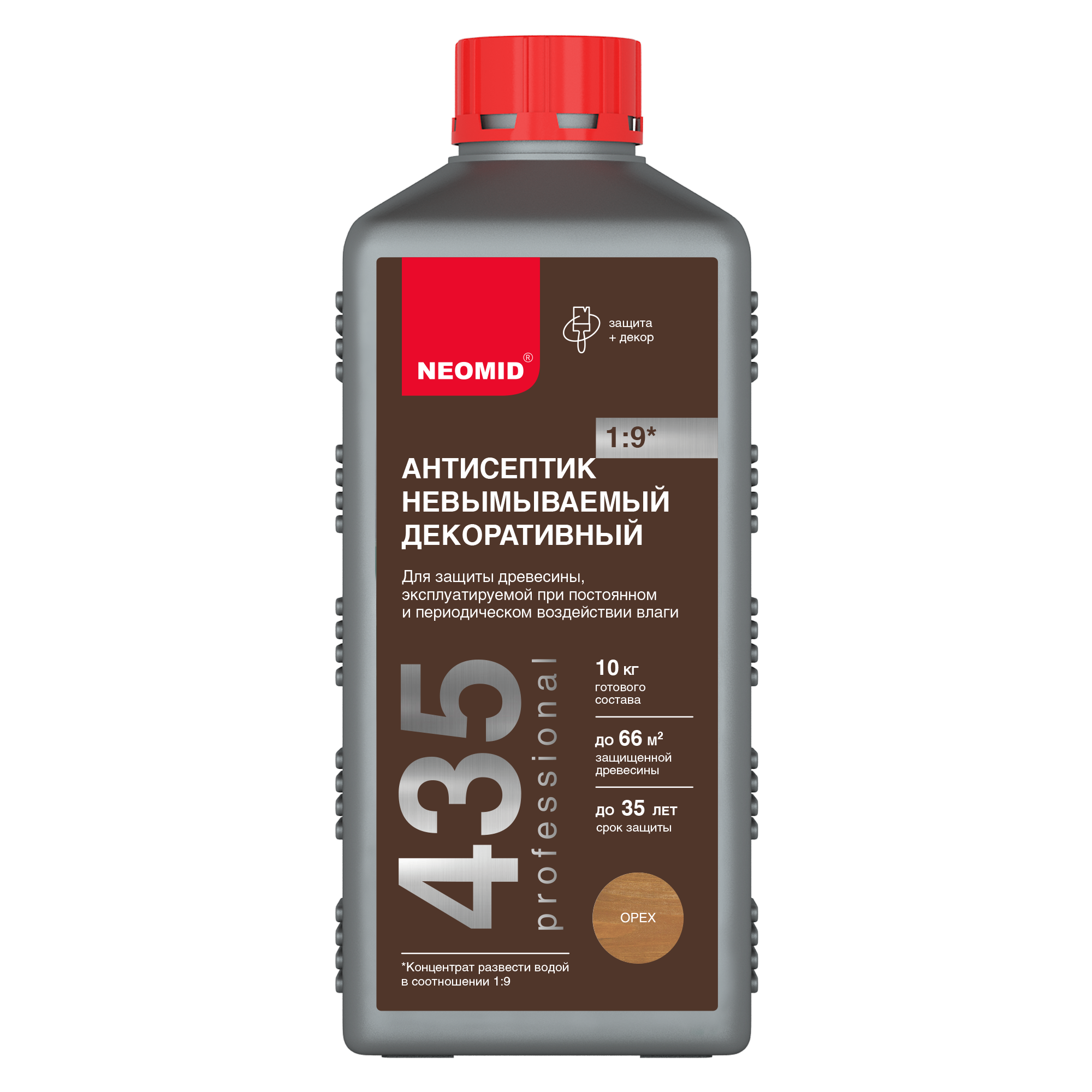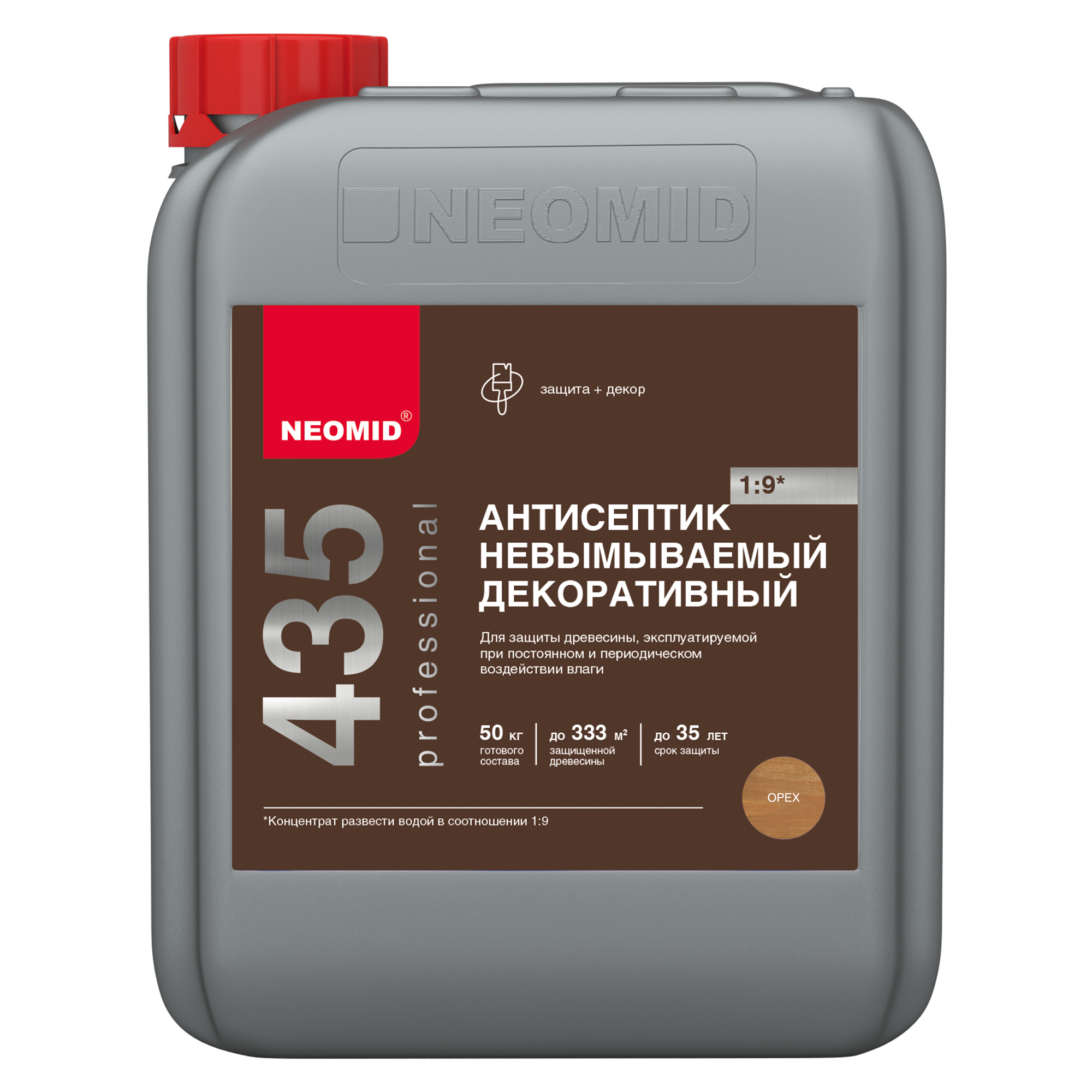 NEOMID 435 Eco невымываемый декор антисептик 1:9  -  Невымываемый декоративный антисептик. Защищает древесину от поражения дереворазрушающими и деревоокрашивающими плесневыми грибами, водорослями, мхами, насекомыми-древоточцами на срок до 35 лет от бренда Neomid с доставкой по России!