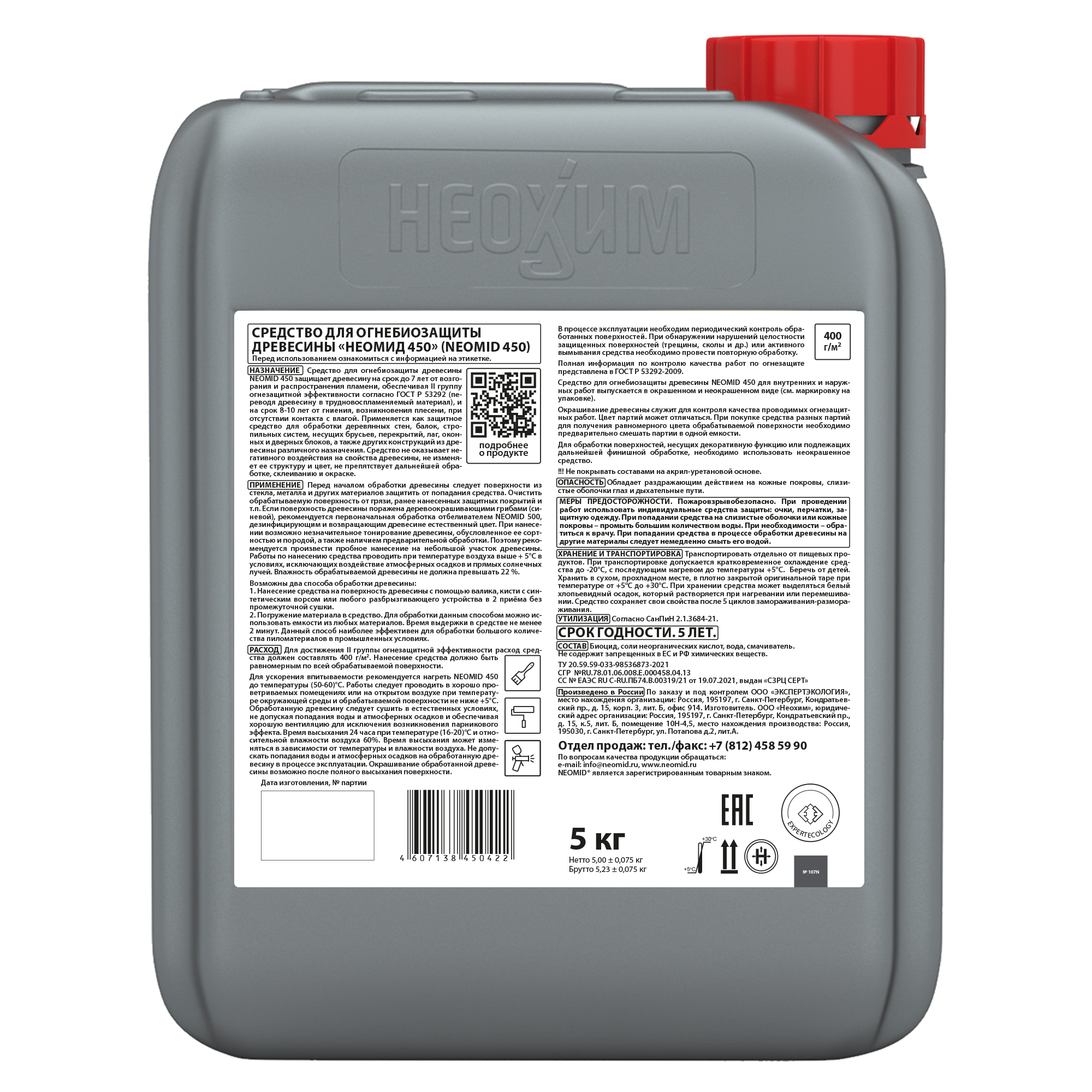 Средство для огнебиозащиты древесины «Неомид 450» для внутренних и наружных работ выпускается в окрашенном и неокрашенном виде (см. маркировку на упаковке).