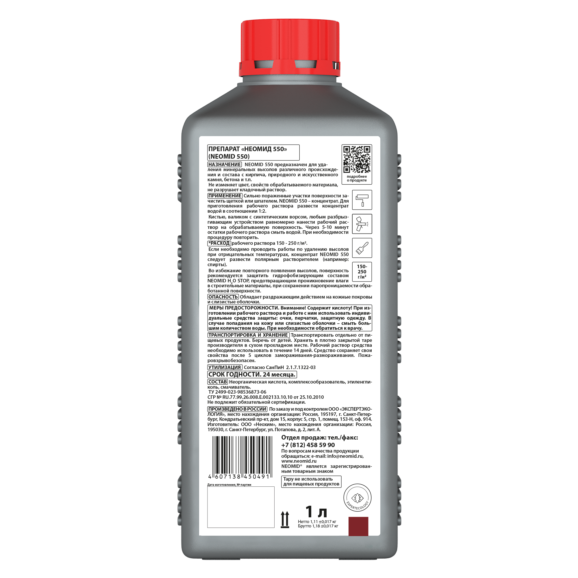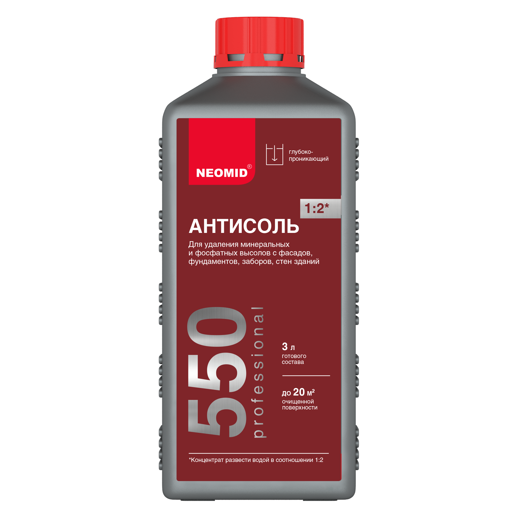NEOMID 550 предназначен для удаления минеральных высолов различного происхождения и состава с кирпича, природного и искусственного камня, бетона и т.п.