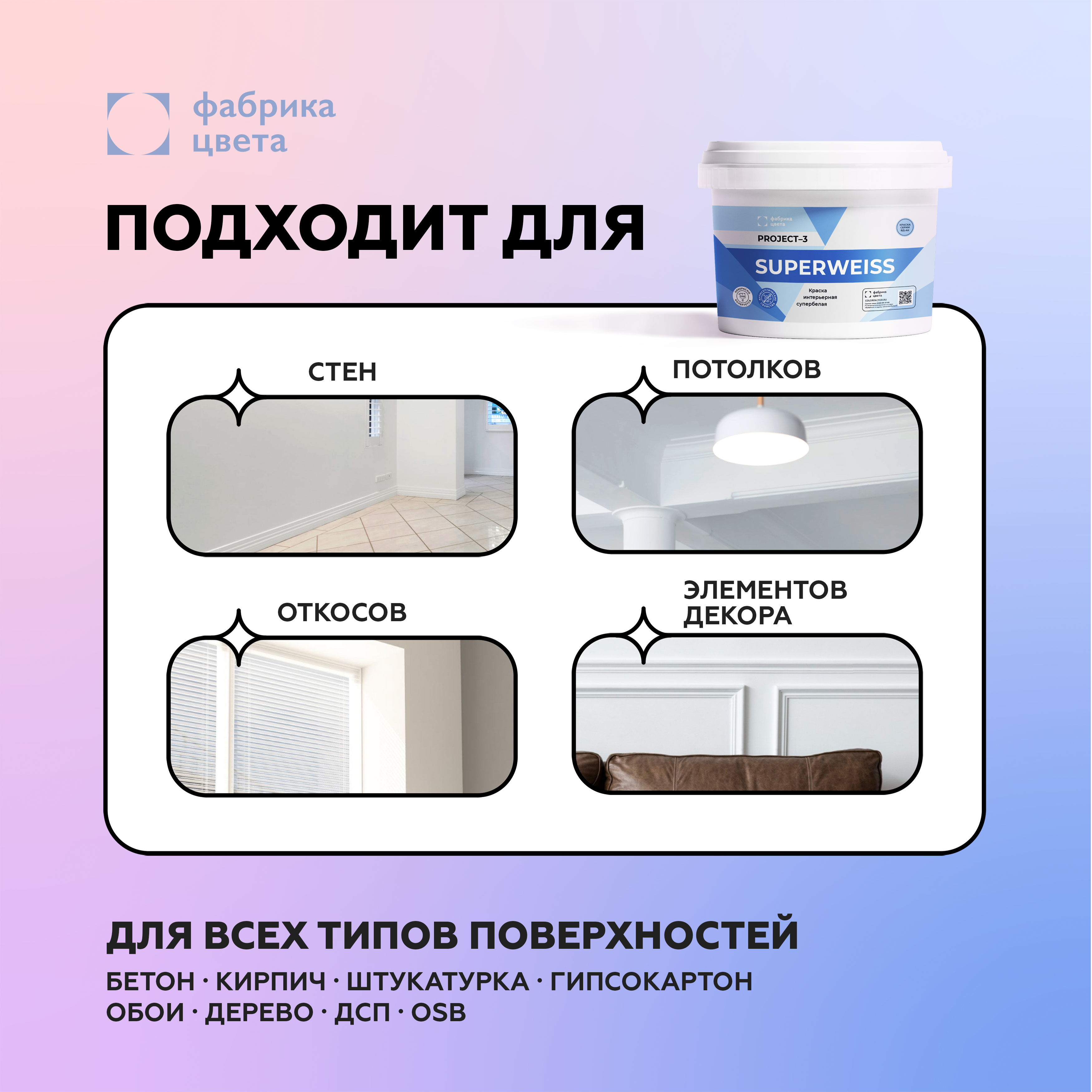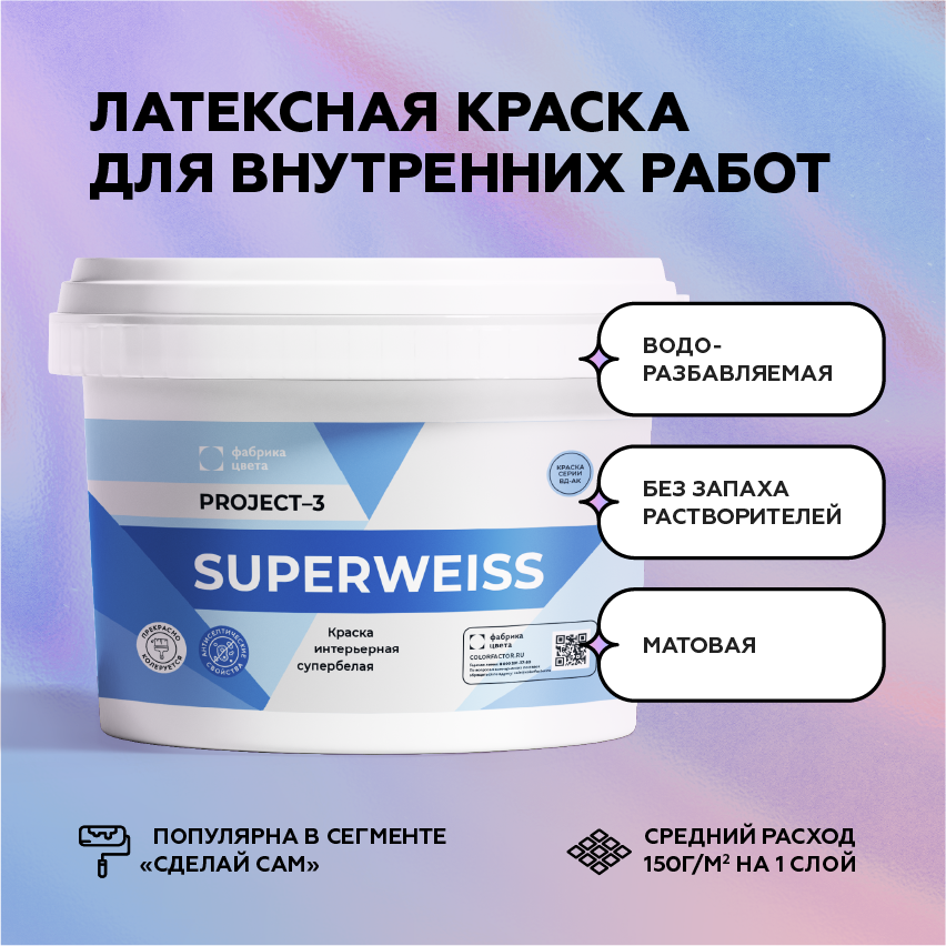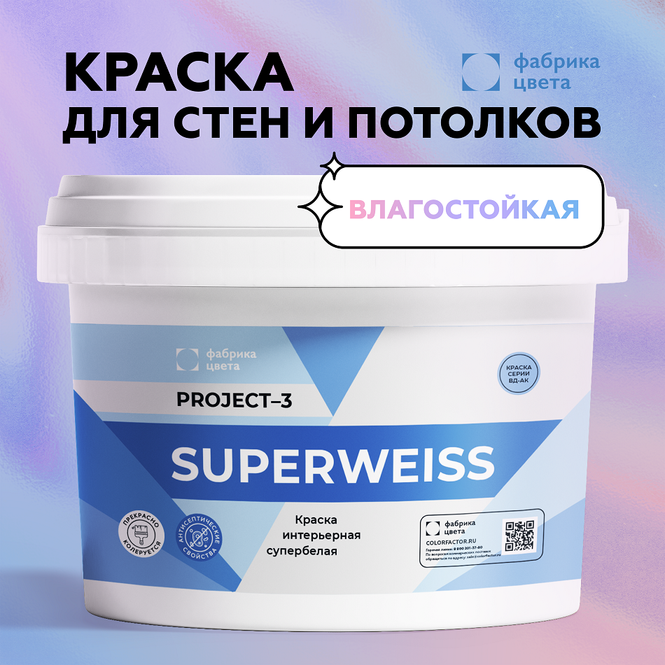 Project-3 Супервайс краска для стен и потолков  -  Латексная крака для стен и потолков в сухихи помещениях с антисептическими добавками от бренда ФАБРИКА ЦВЕТА с доставкой по России!